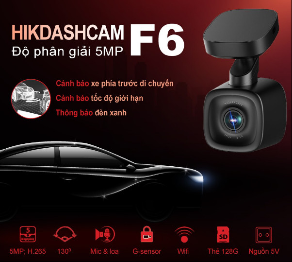 + Camera hành trình ô tô Hikvision F6: Đây là 1 dòng Dashcam “cưng” của Hikvision với full option – với đầy đủ tất cả các tố chất để có thể trở thành Best Seller không chỉ tại thị trường Việt Nam mà còn trên cả thế giới. Hình ảnh siêu đẹp cả ngày và đêm, độ phân giải 5MP kể cả khi xuất video xuống, tiêu chuẩn nén H265, Góc nhìn chéo 130°, Tích hợp Micro, Loa, cảm biến G-sensor, Cảnh báo bằng giọng nói ngôn ngữ Tiếng Việt, lưu lại lộ trình bằng GPS, hỗ trợ lái xe thông minh ADAS thông báo thay đổi trạng thái đèn giao thông, nhắc nhở khi xe phía trước di chuyển, tự động phân tích và đọc biển báo giao thông giới hạn tốc độ.